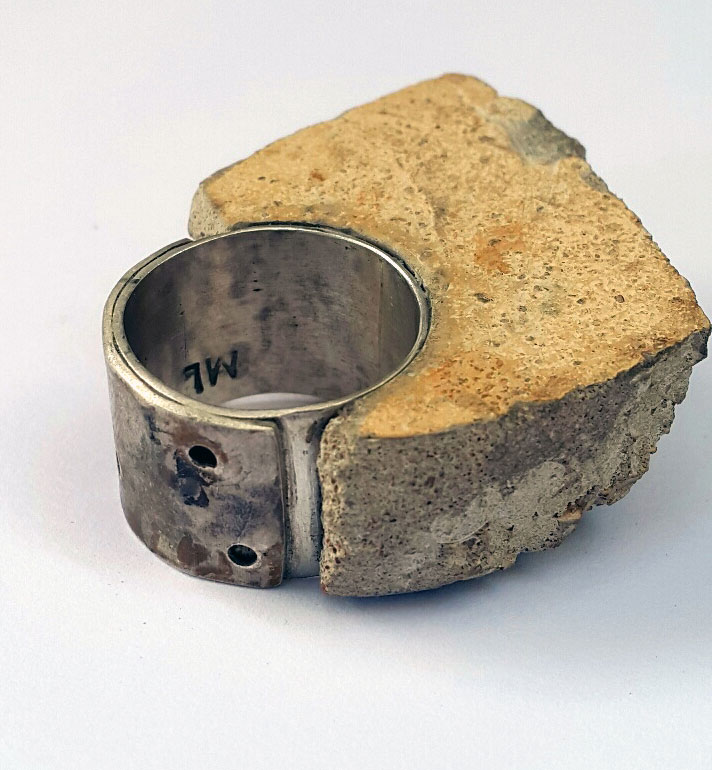 The criterion in which elements works together as a piece of jewellery takes shape. I never start out with a sketch and design in place but rather just start with what there is to work with, a vague idea that starts growing and let the piece dicate what it wants to become. In this case, I have a bit of concrete and a diamond. I know I want to "grow" a ring with concrete and a diamond. That is for me the start of a wonderous new world.